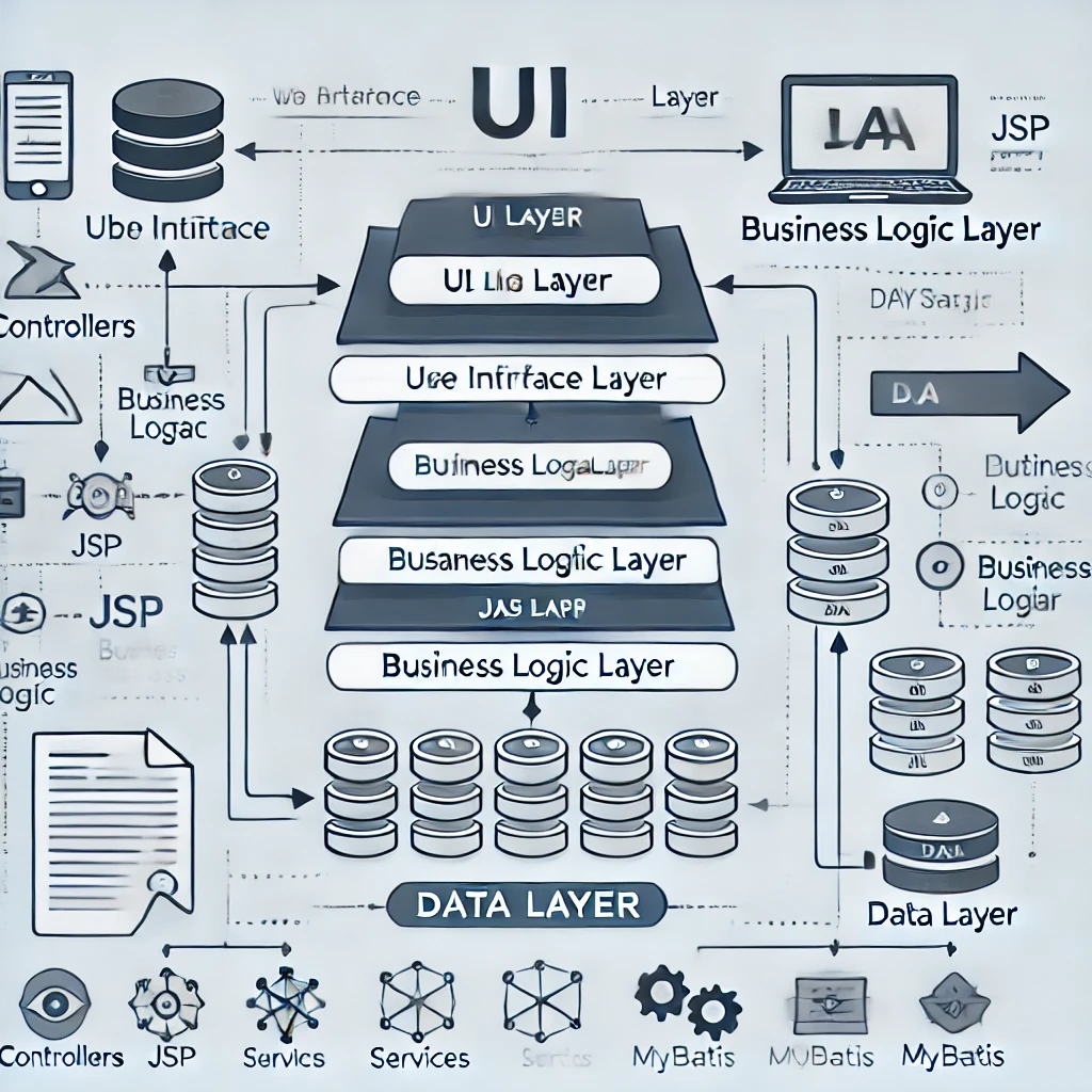 - 사용자가 시스템과 상호작용하는 화면. JSP, HTML, JavaScript로 구현됩니다.